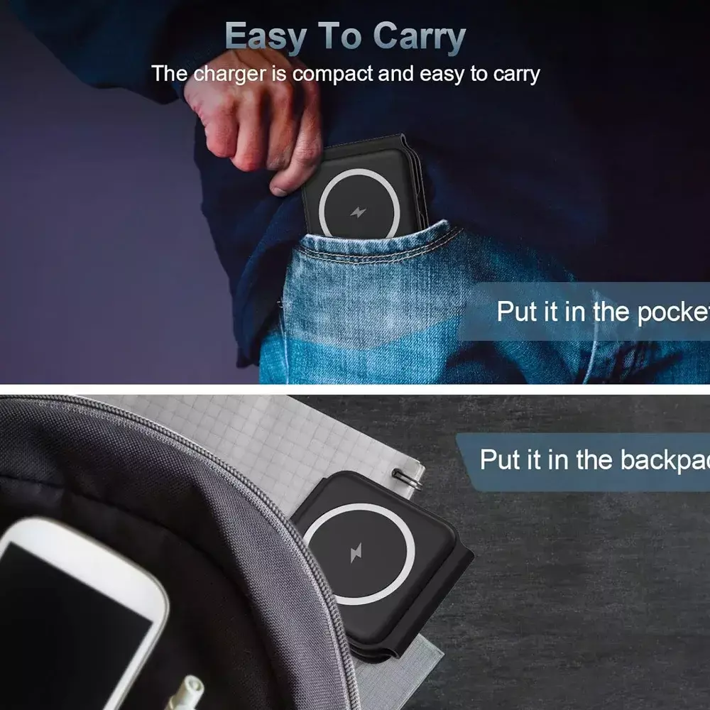 Design ajustável e portátil? O silicone macio torna o 180° dobrável suave, a base de carregamento sem fio se transforma em um suporte de telefone em segundos.Ao carregar, o telefone é colocado horizontalmente para assistir filmes e verticalmente para conversar.A placa de carregamento é coberta com um dispositivo magnético, que não escorrega mesmo se for sacudido.Pode ser usado em escritório, casa, mesa de jantar e quarto.